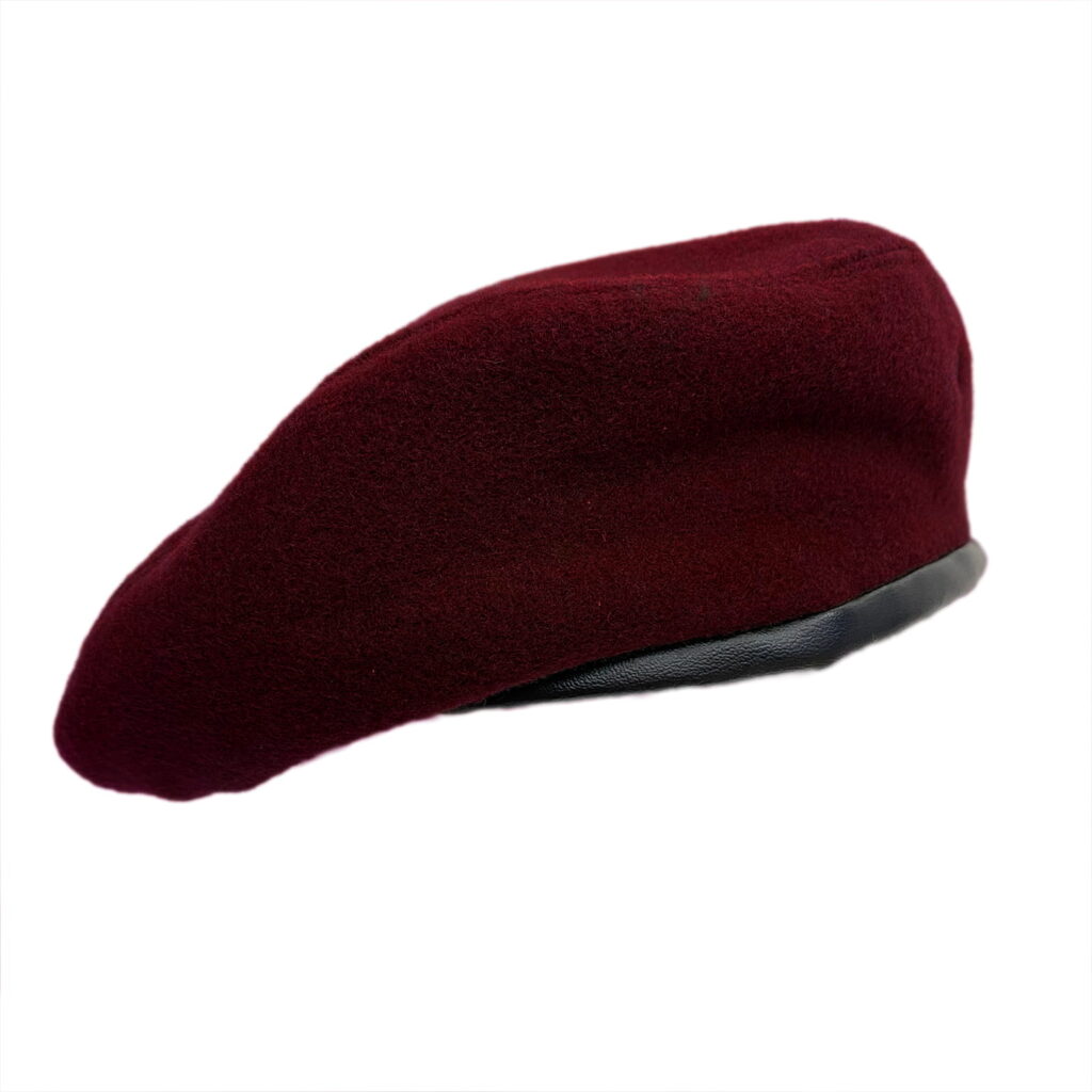 Beret harcerski koloru bordowego. Lepiej kupić centymetr a nawet dwa większe niż obwód głowy.